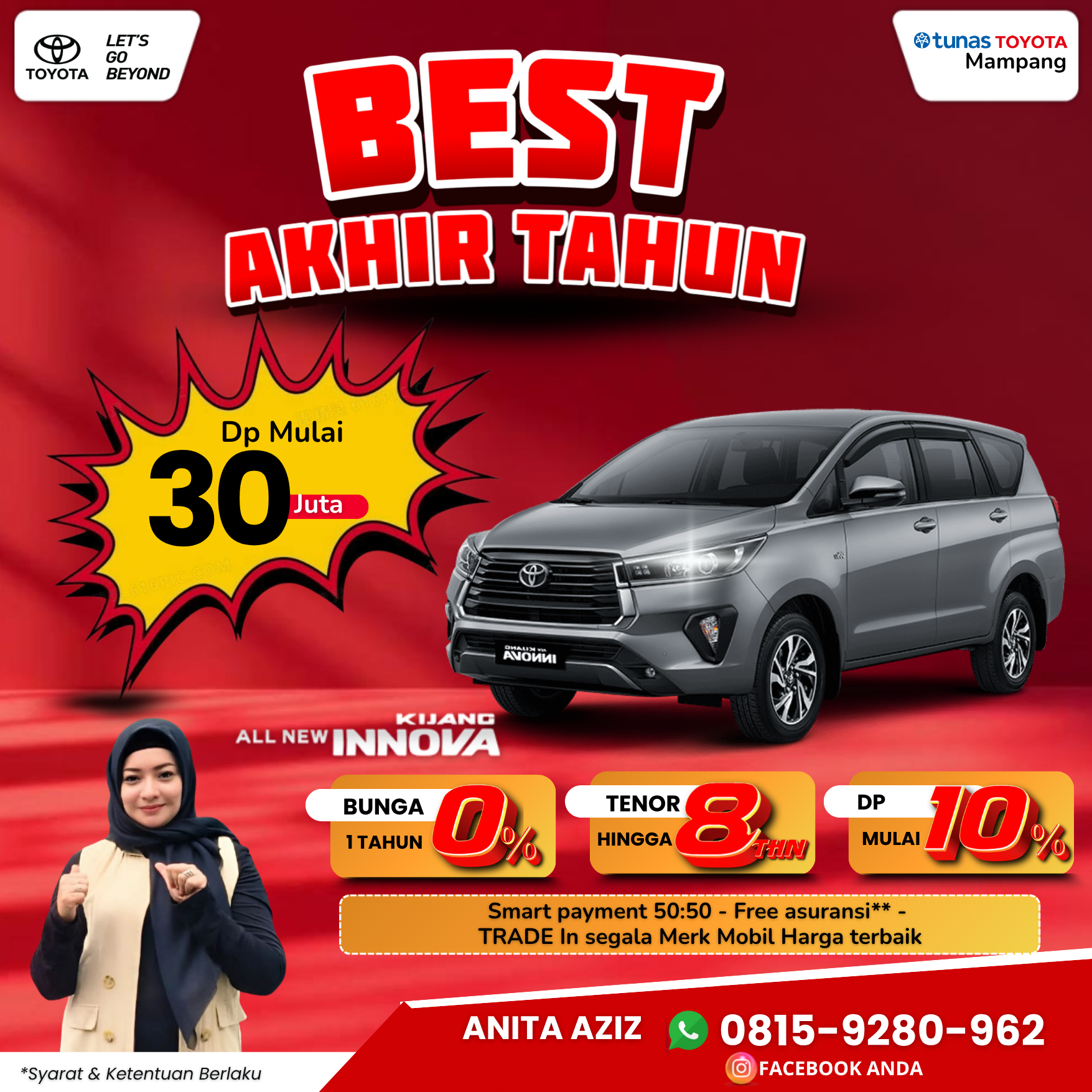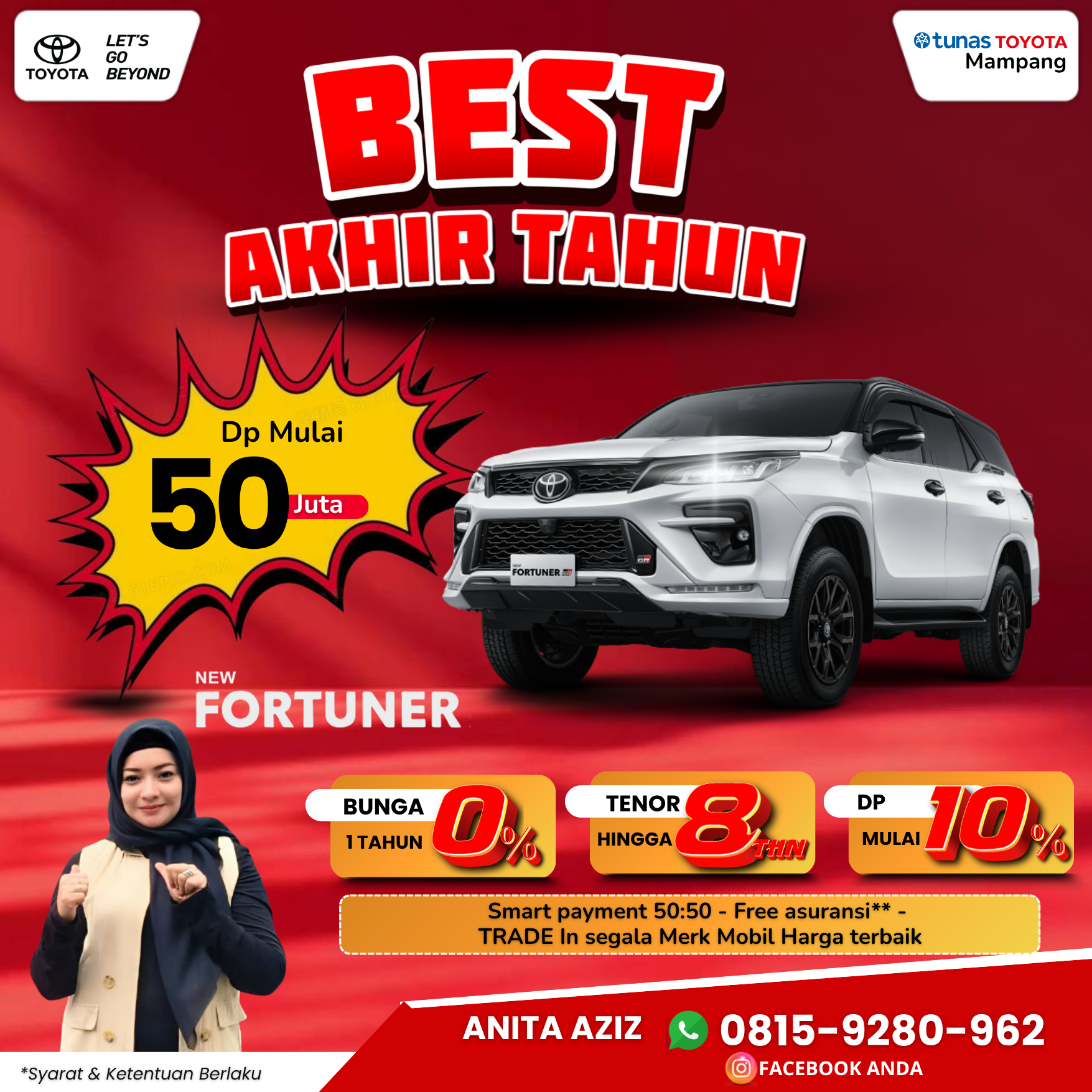 Ajukan Trade-In →Paket Finansial Terbaik untuk Toyota Anda! Nikmati Bunga Mulai dari 0% (atau sebutkan persentase rendah yang spesifik) dan Cicilan Super Fleksibel. Kami jamin proses cepat, anti-pusing, untuk semua unit. Ambil kesempatan ini sekarang!